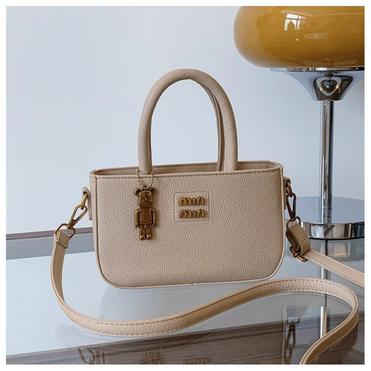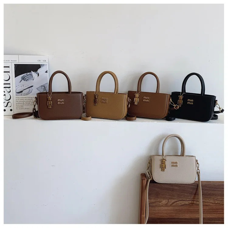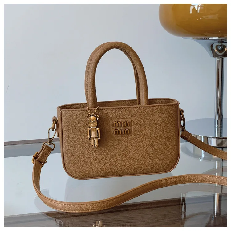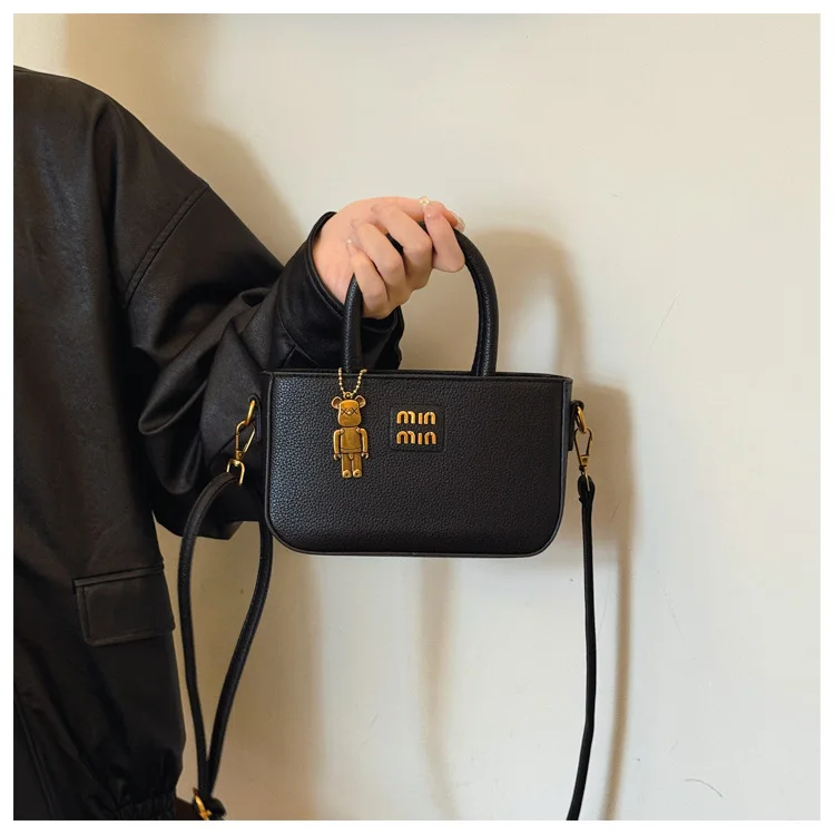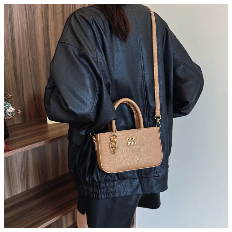 This small square bag features a trendy design with letter elements, perfect for the 2025 spring season.