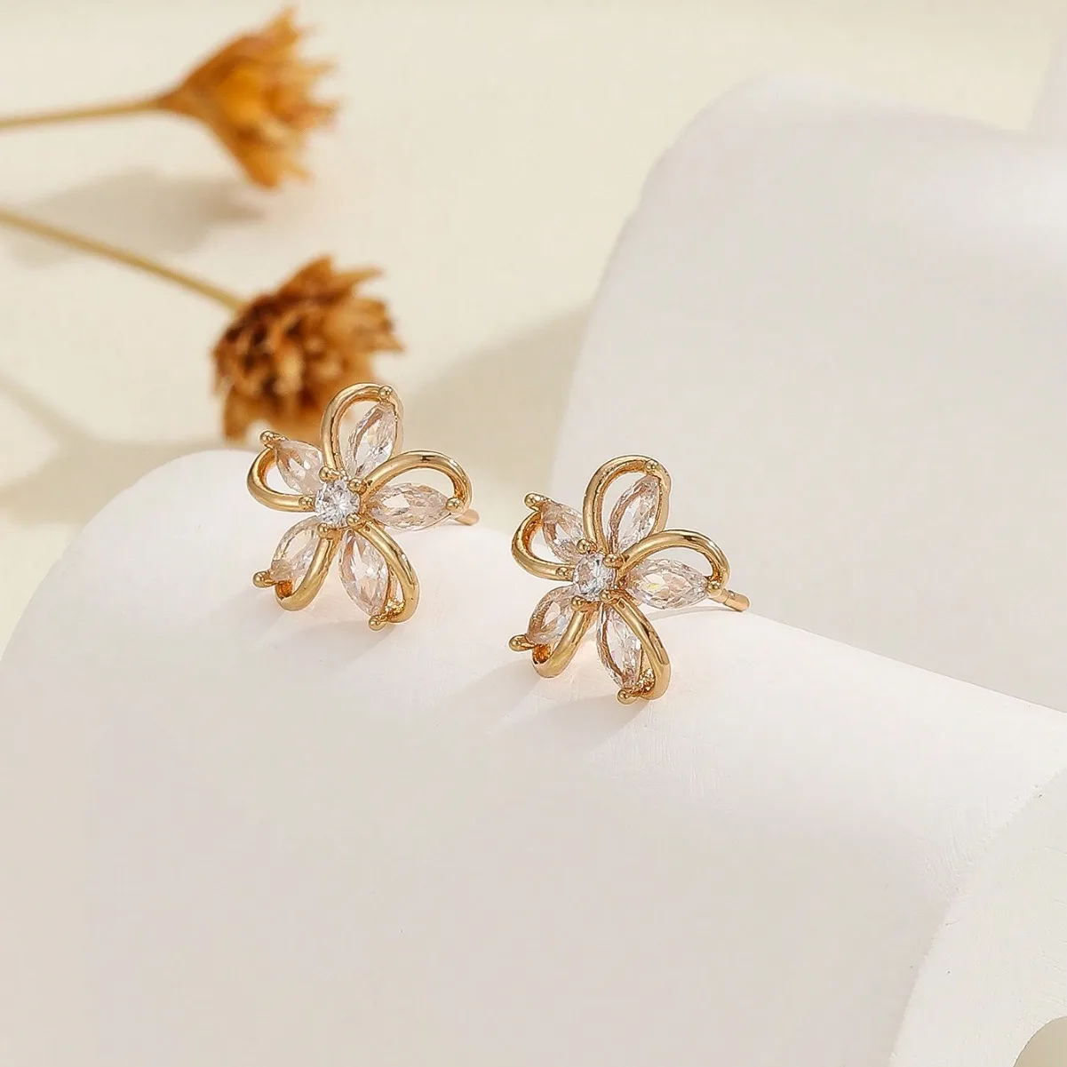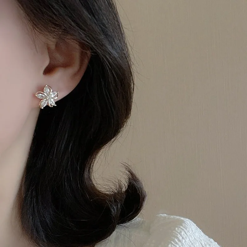 Dainty Flower Stud Earrings for Women Piercing Cartilage Ear Ring Cute Zircon Gold Color Women’s Aesthetic Jewelry Gift