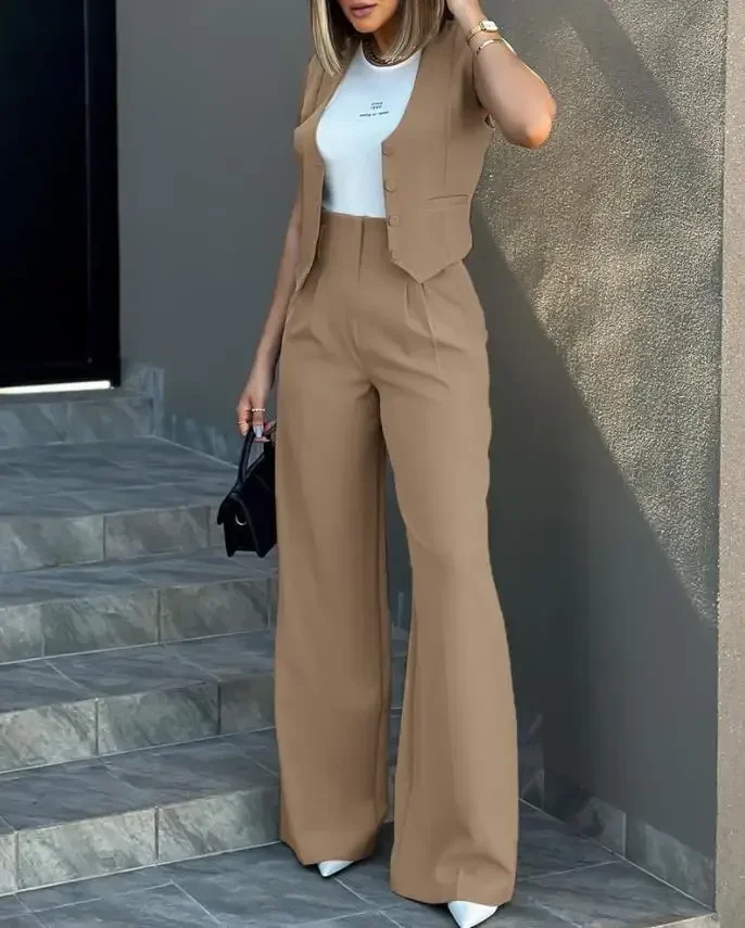 كن أول من يكتب مشاركة "طقم بنطلون عمل مكون من صدرية وبنطلون واسع وخصر مرتفع"