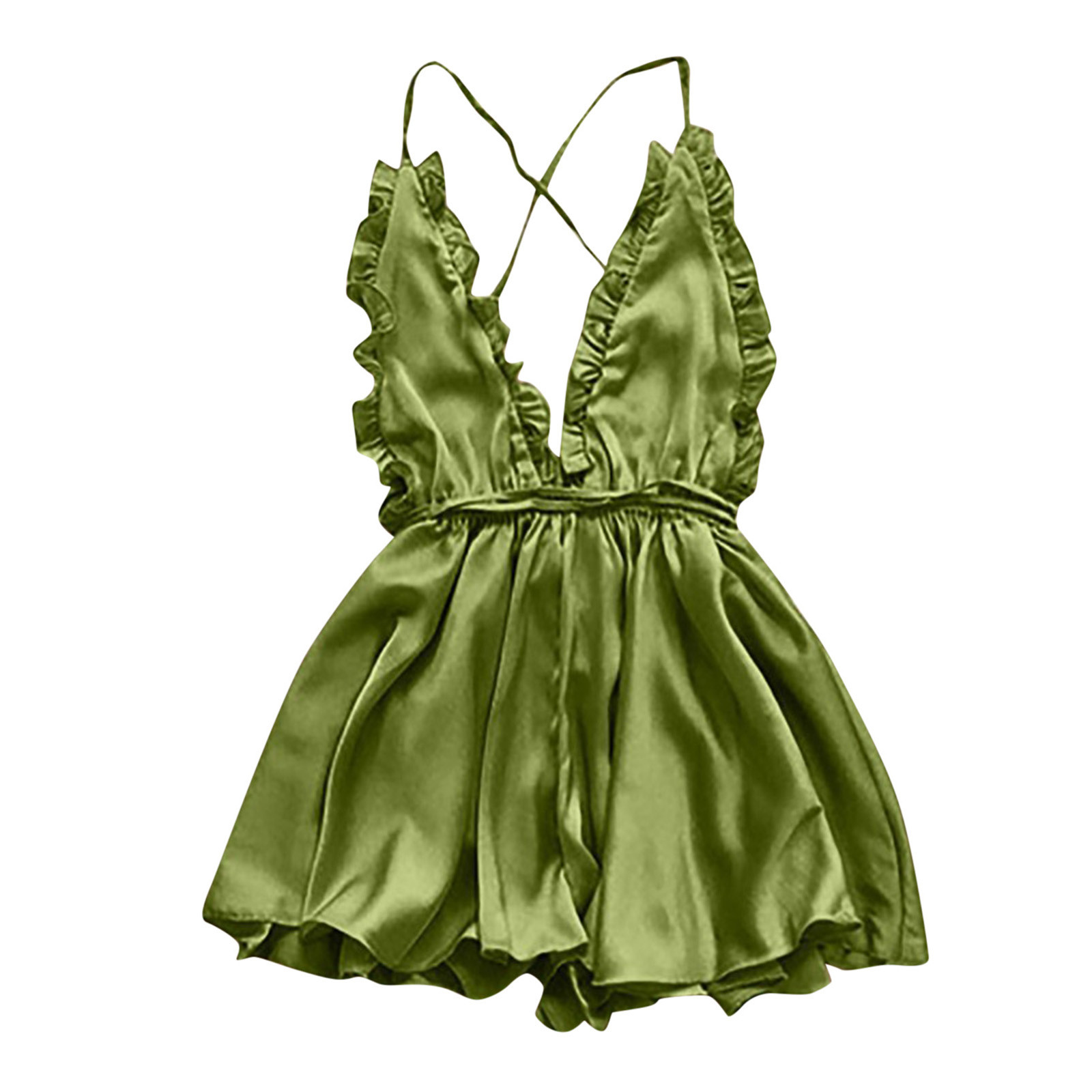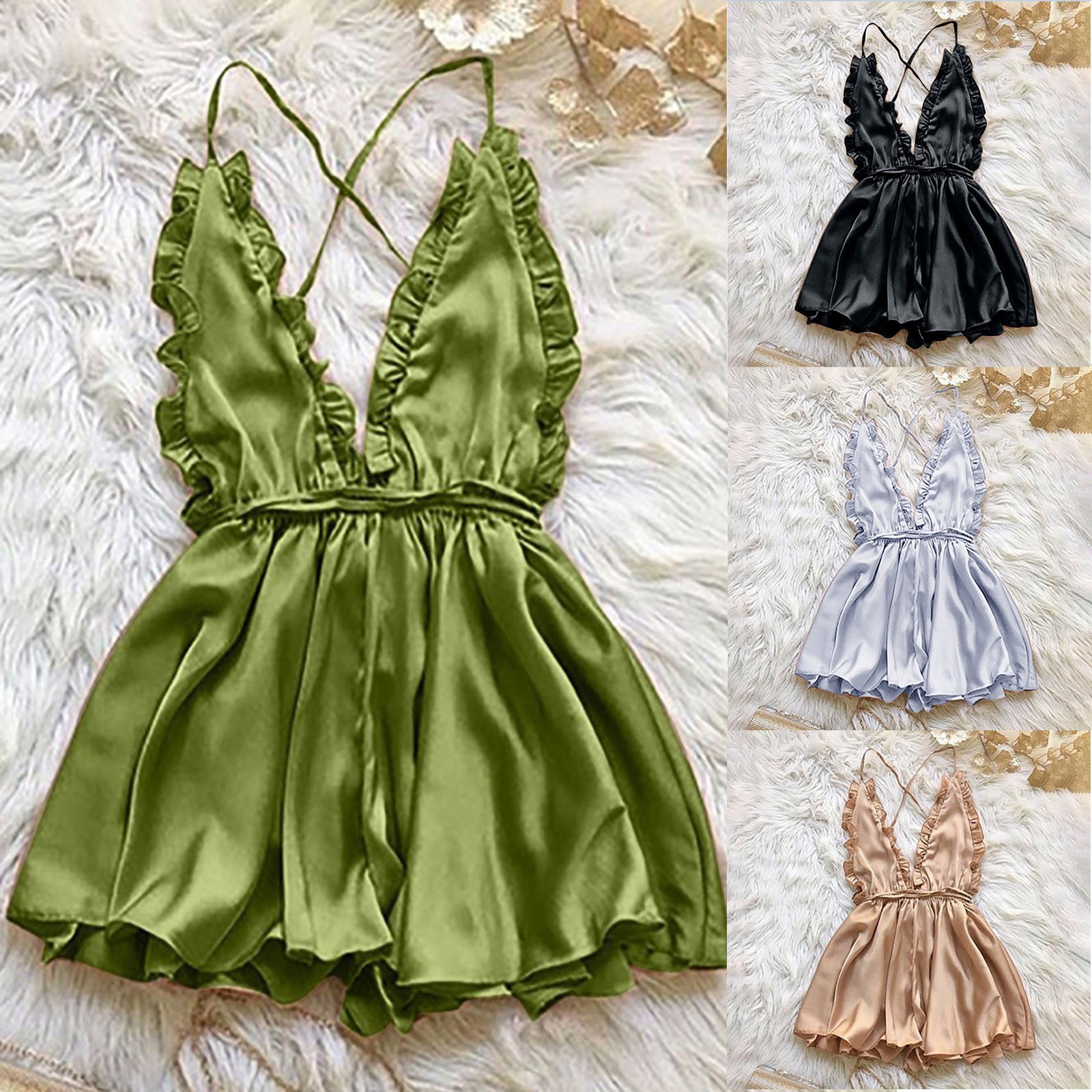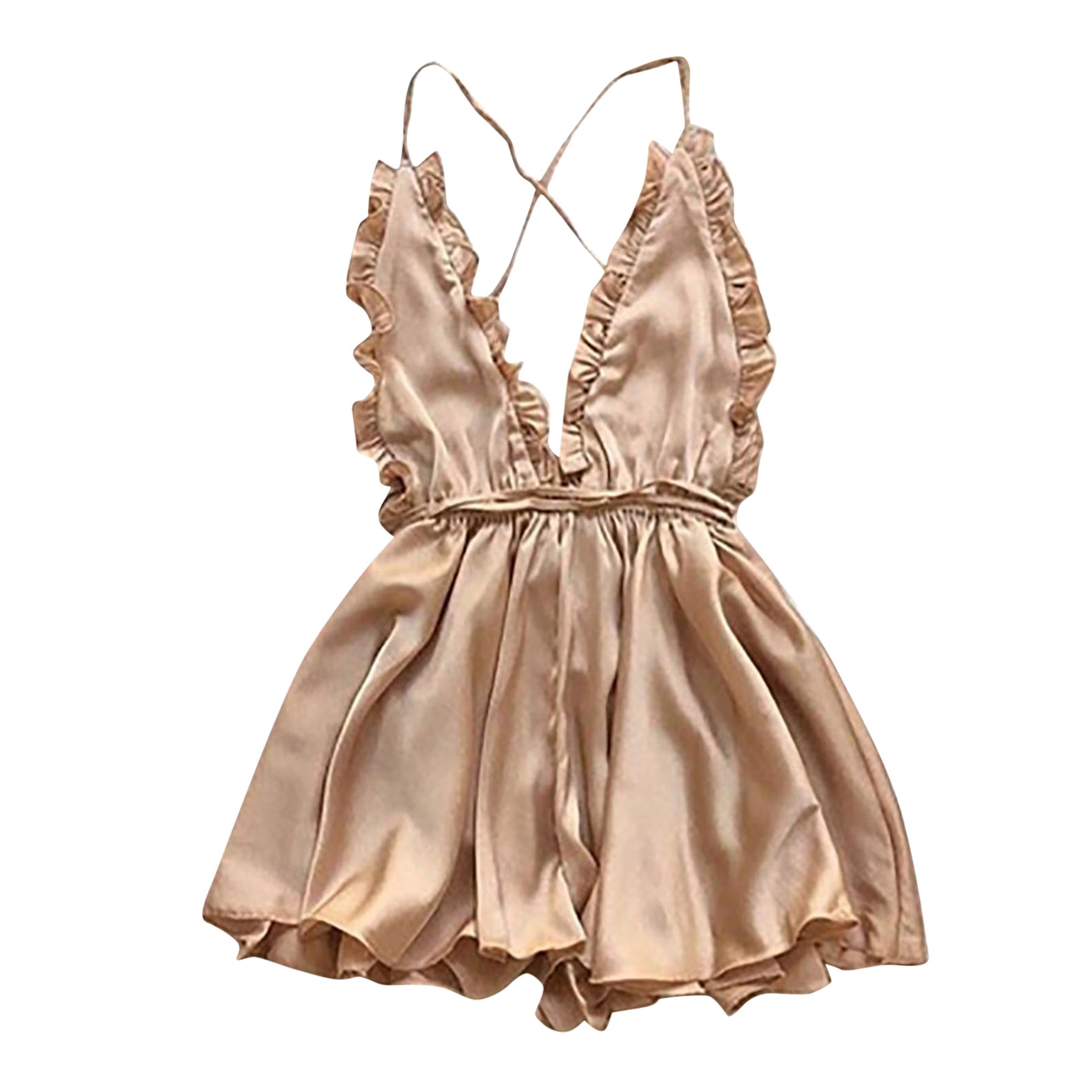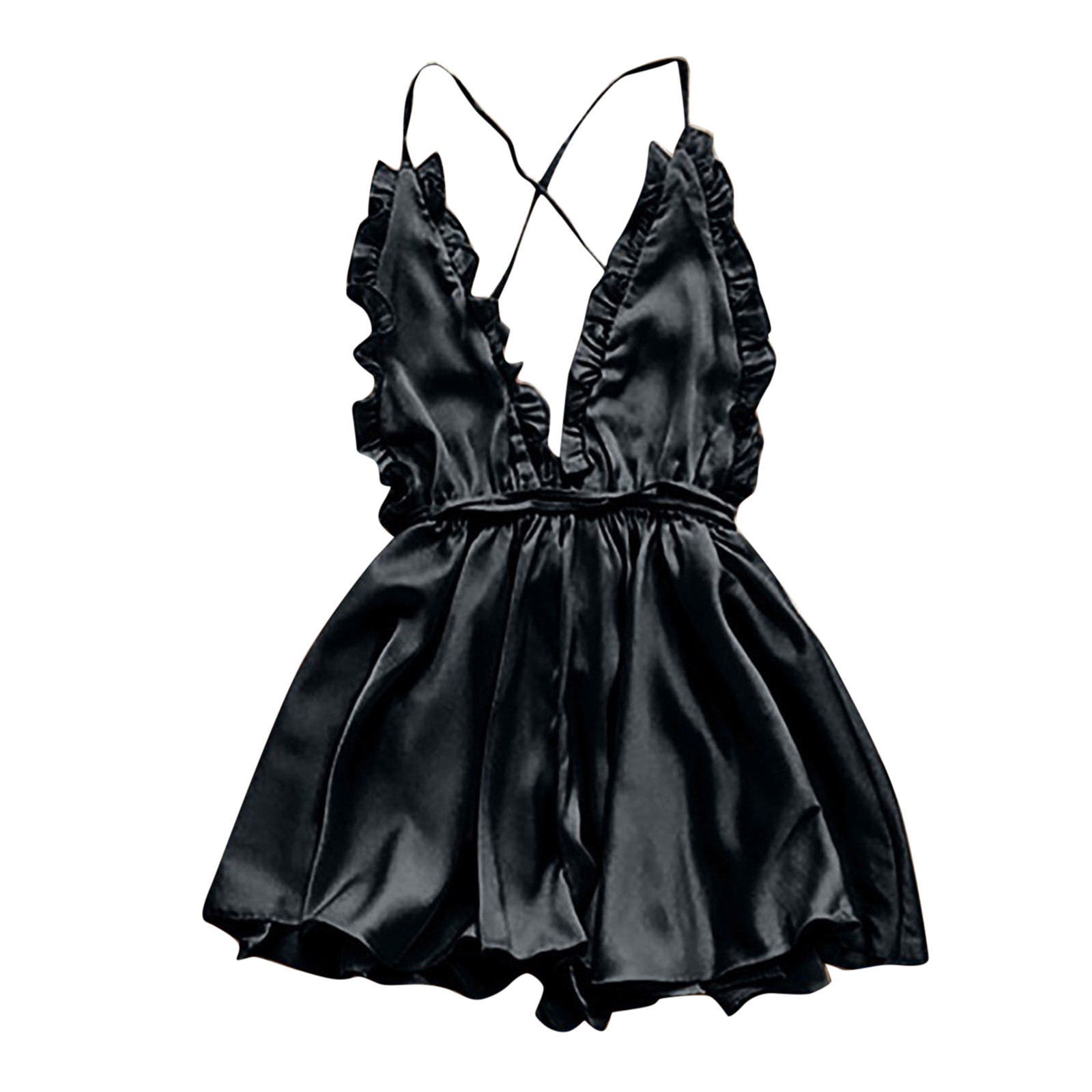 Women’s Sexy Dress With Wooden Ear Edge Deep V Neck Neck Tie Backless Sexy Lingerie Nightdress