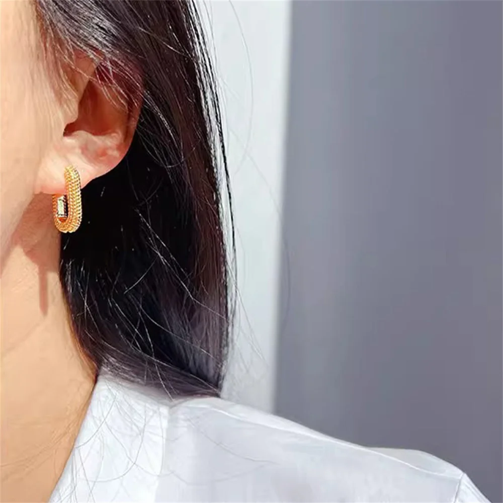 أقراط مربعة من سبائك الذهب على شكل هندسي متدلي