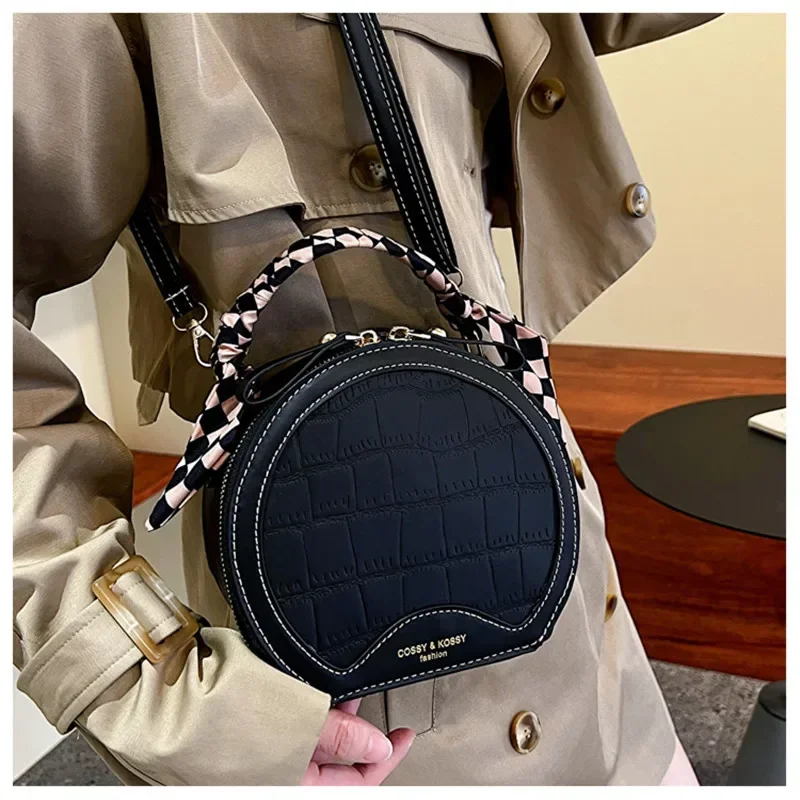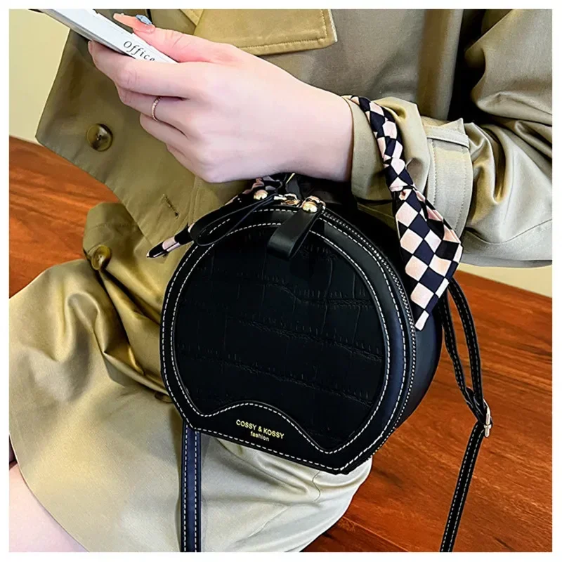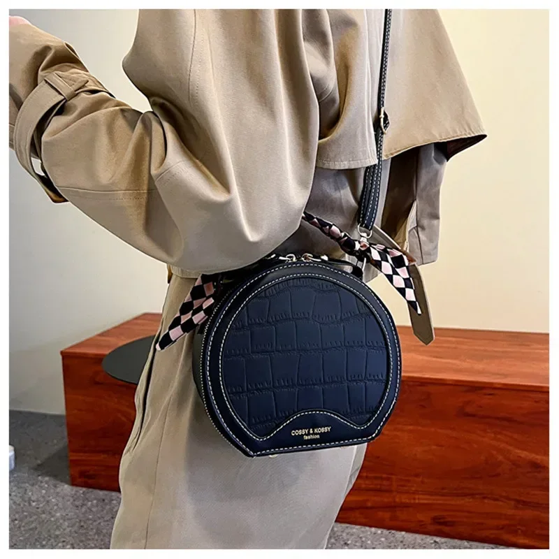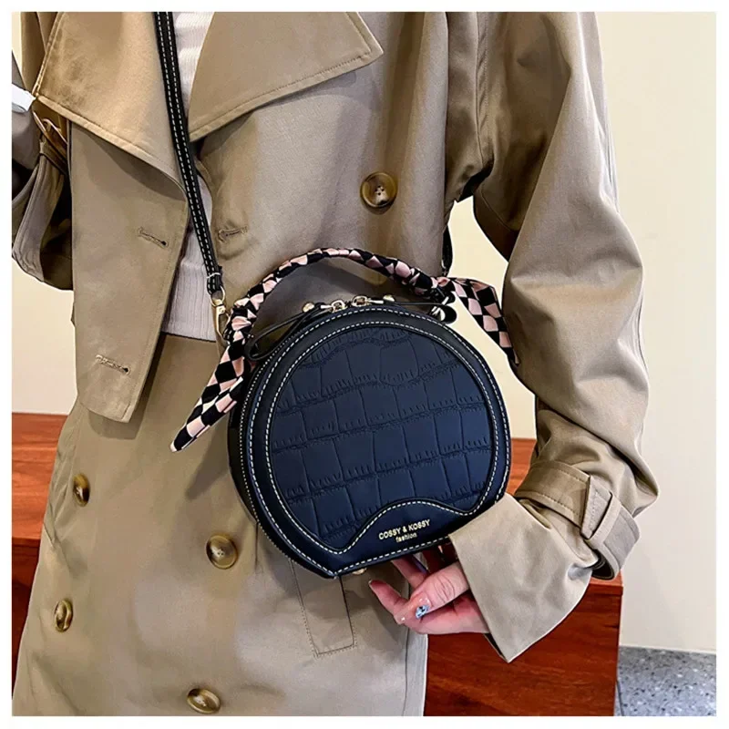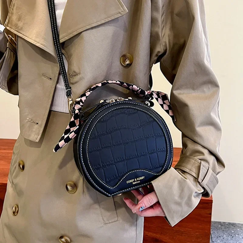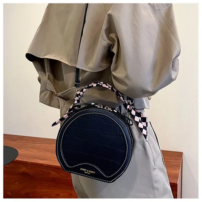 حقيبة صغيرة مستديرة جديدة بنقشة حجرية