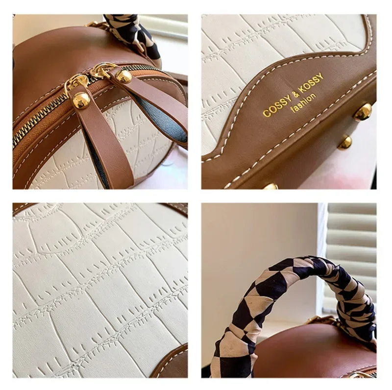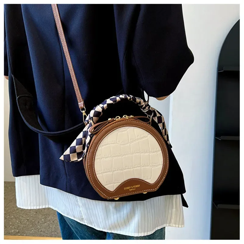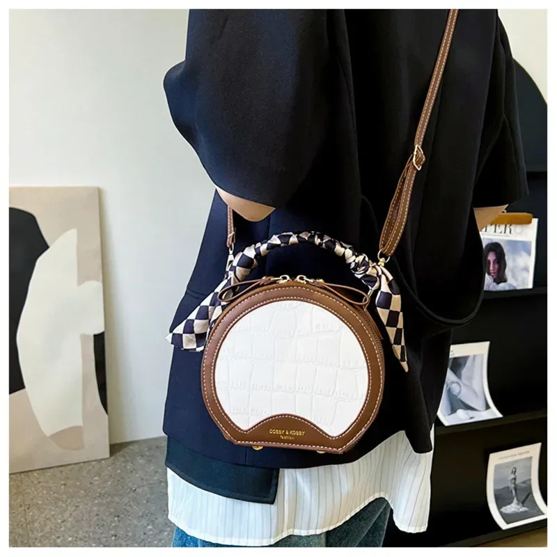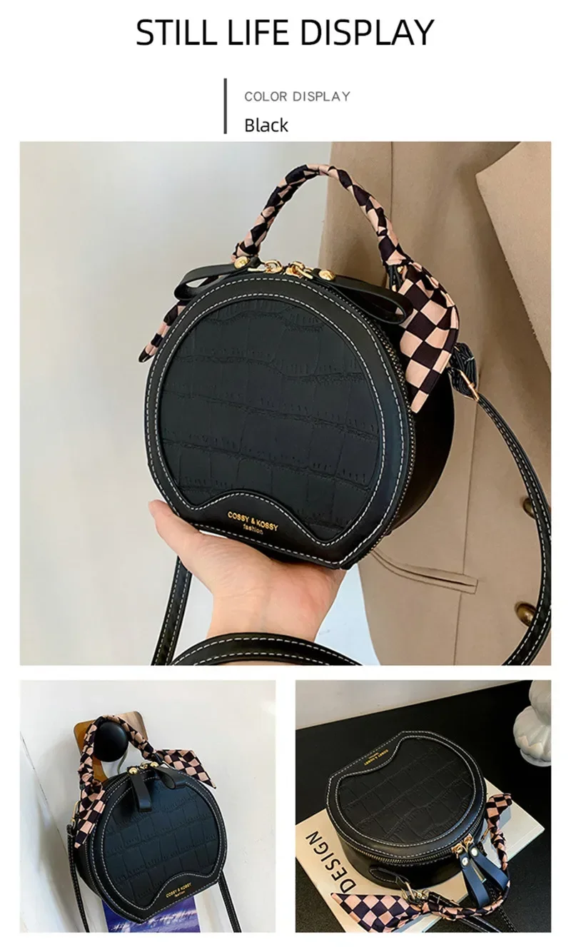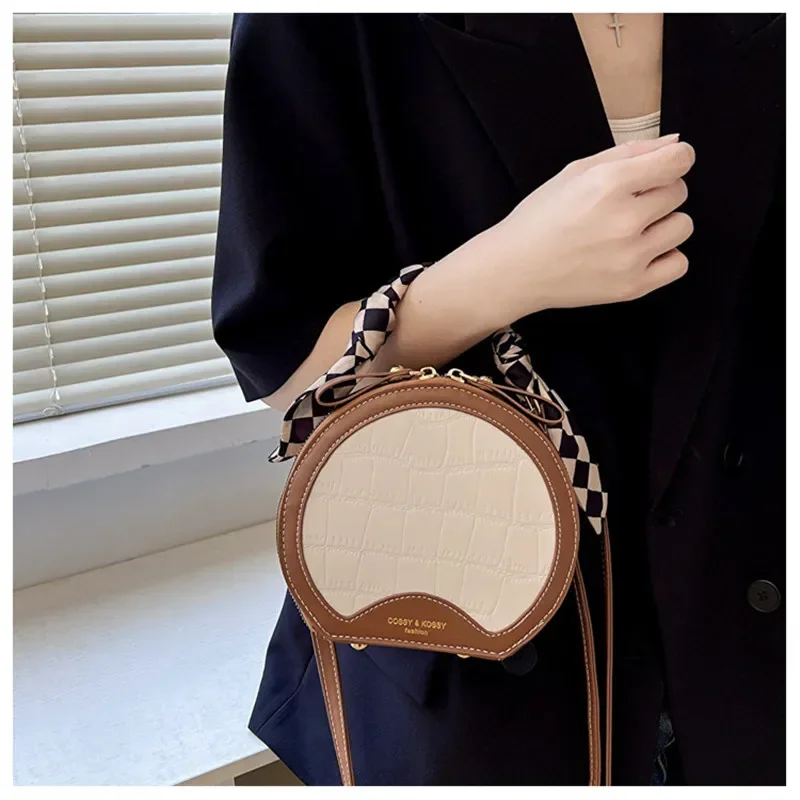 حقيبة صغيرة مستديرة جديدة بنقشة حجرية