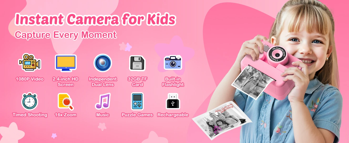 Kids Camera Instant Print for Kids Age 3-12, Christmas/ Birthday Gifts for Girls and Boys